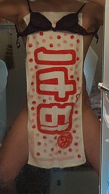 何処にも旅行なんて行けないので、娘が購入したバカタオルを持って伊香保で撮りました。いやだ、恥ずかしい、と言いながらもちゃんとサングラスを自分で用意して撮影させてくれましたよ。(娘より)