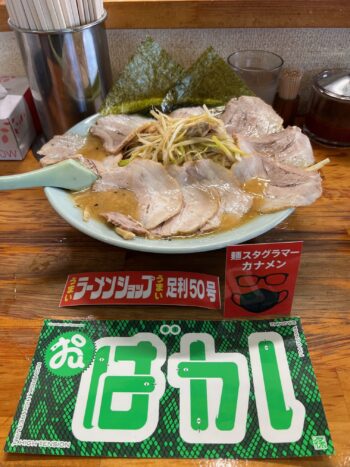 ステッカー当選お祝いに銀河一好きなラーメン店のラーメンショップ足利50号店でネギみそチャーシュー、チャーシュー増し🍜