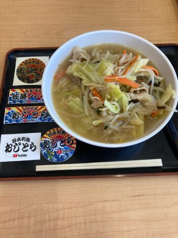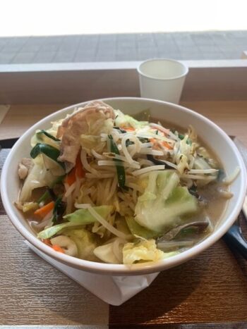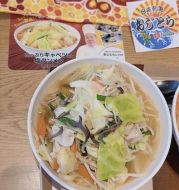 おじとらさんコラボラーメン!!塩タンメン!!太田強戸PAにて  お向かいの奥さまも食べてました〜