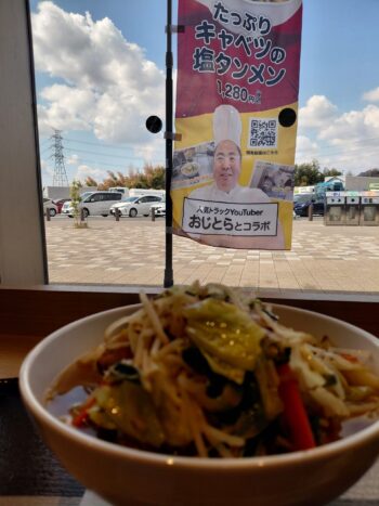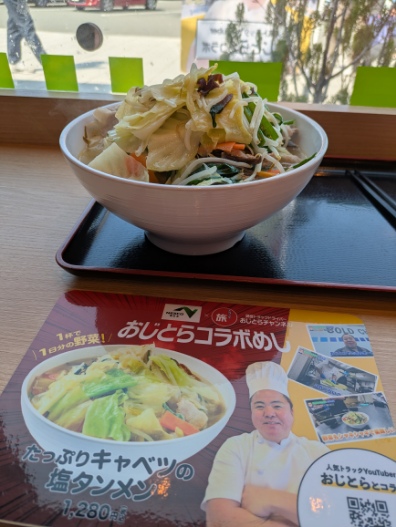 太田強戸PAにおじとらコラボめし「キャベツたっぷり塩タンメン」を食べに行ったら