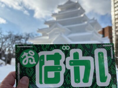 さっぽろ雪まつり会場で国内外からの観光客にneoバカステッカーを見てびらびらかしました。写真は会津の鶴ヶ城の雪像です。
