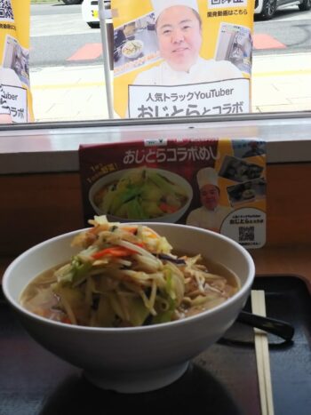太田強戸PAでおじとらコラボめし【たっぷりキャベツの塩タンメン】を食べてきました!とってもボリューミーで美味しかったです!また食べたいので今度は違う場所に出かけてみようとおもいます!ご馳走様でした!