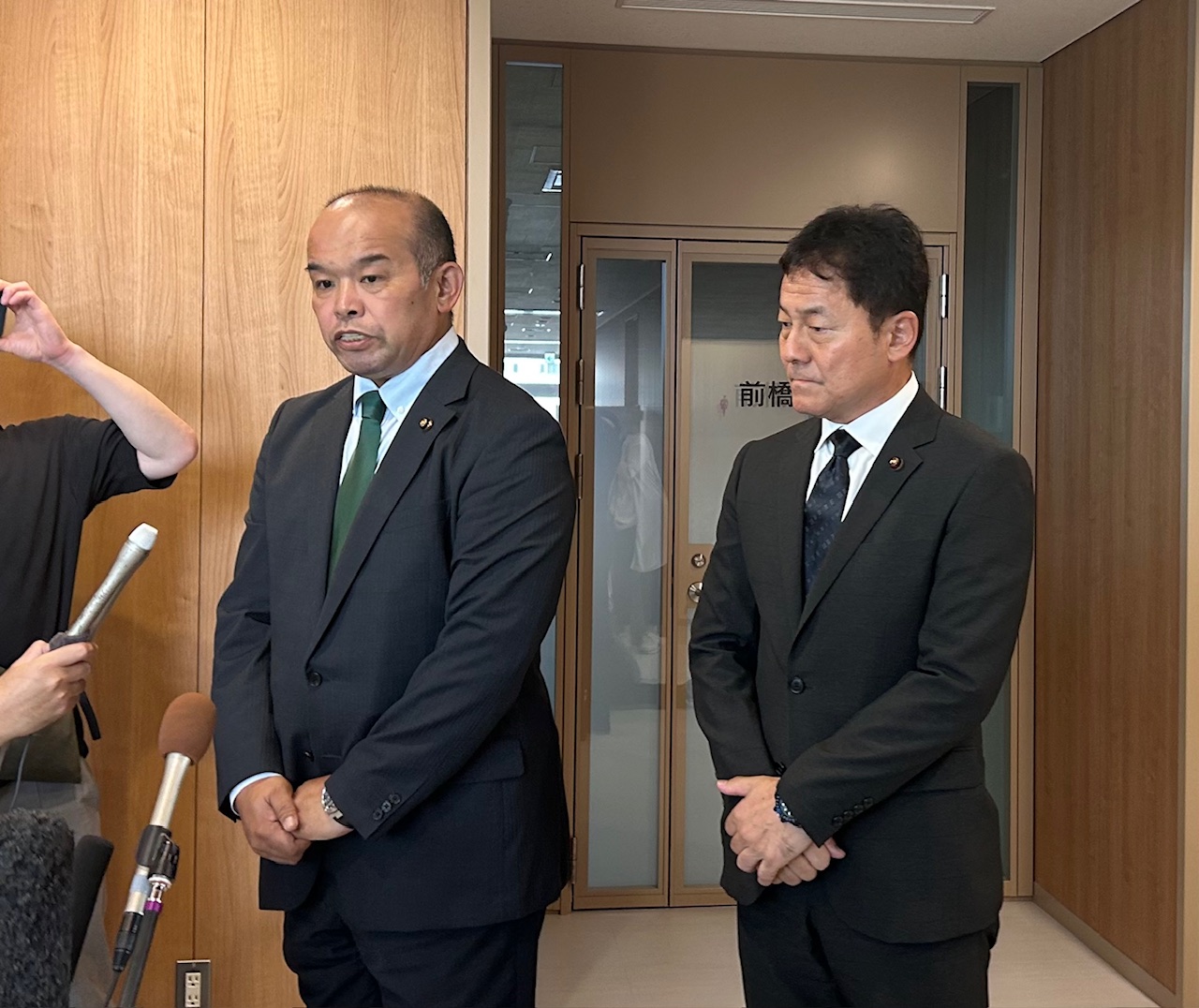 富田公隆議長(写真左)によりますと、小川市長は文書を受け取り、10月2日に市議会への説明の場を設けると述べました。小川市長は26日に市議会への説明を行いましたが、およそ10分間と短く、質疑も受け付けず、内容も2日前に行った記者会見と同じでした。2日は、議員からの質問を受けるということです。
