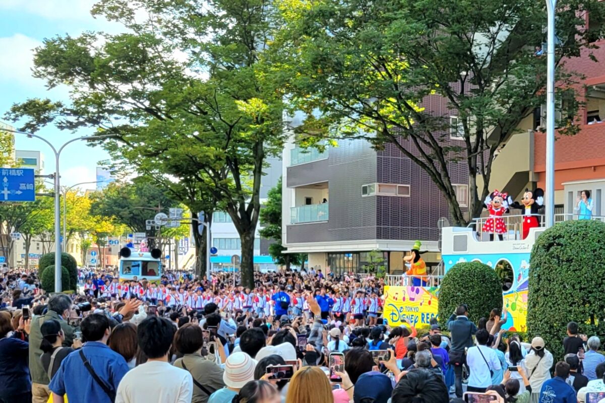 また12日は「東京ディズニーリゾートスペシャルパレード」も行われ、おなじみのキャラクター達が「ジャンボリミッキー!」の曲にあわせて前橋の小学生と一緒にダンスを披露しました。沿道には大勢の観客がつめかけキャラクター達に手を振ったり歓声をあげていました。