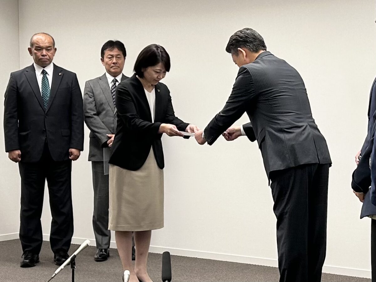 前橋市の小川晶市長が市職員の既婚男性とホテルを利用していた問題をめぐり、前橋市議会の7会派は22日、連名で市長に辞職を求める申し入れ書を提出しました。