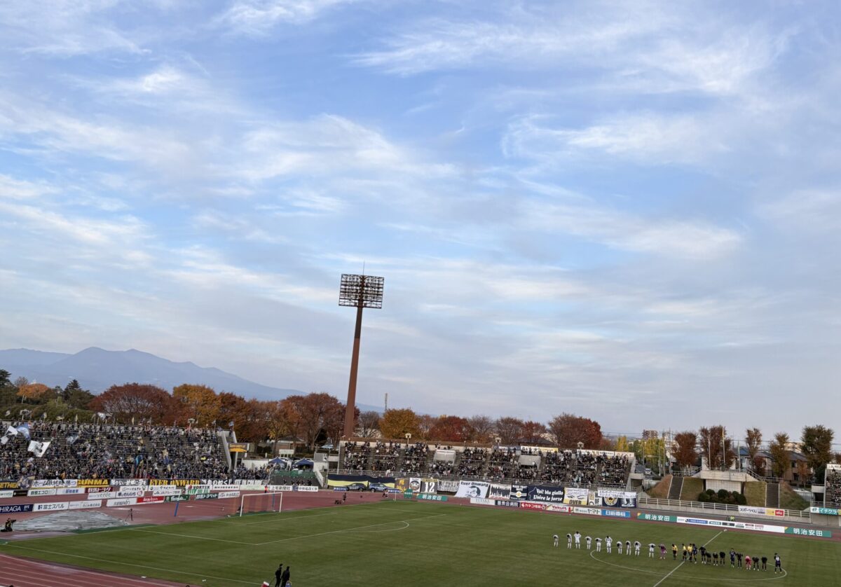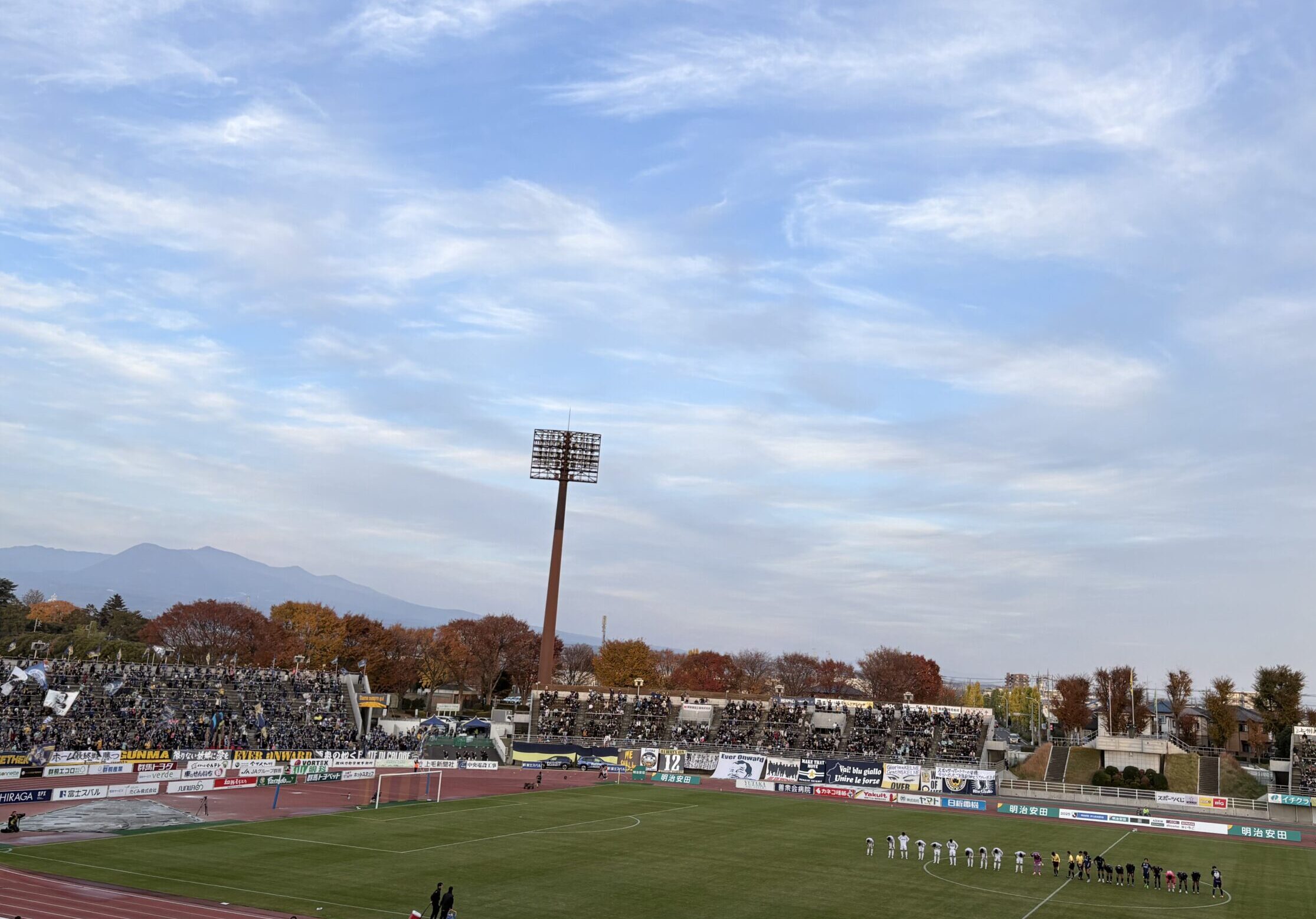サッカーJ3のザスパ群馬は23日、ホーム最終戦で松本山雅FCと対戦し、6対2で勝利しました。これで5連勝です。ザスパは前半6分と16分に小竹 知恩、西村 恭史がゴールを決めリードを奪いますが、その後2点を返され2対2で前半を折り返しました。