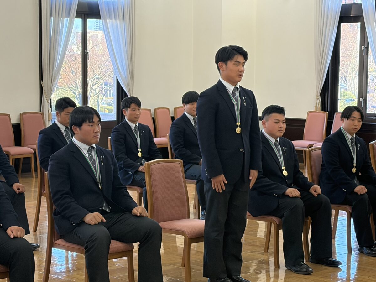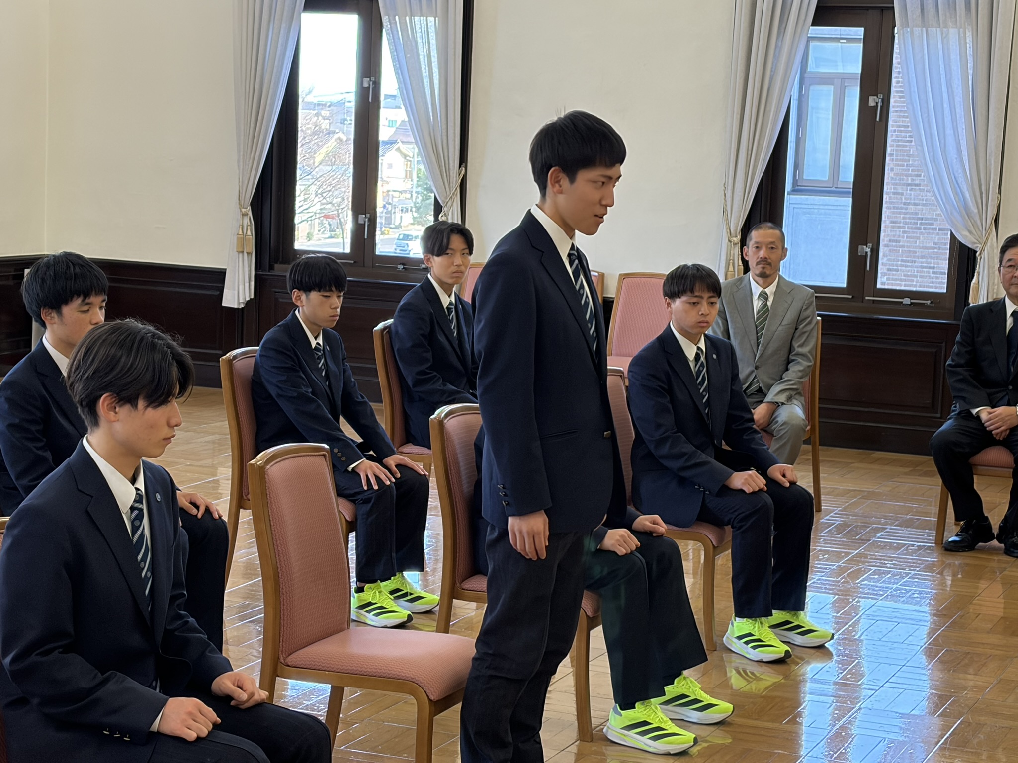 県大会を勝ち抜き、この冬の全国大会に臨む高校スポーツ2チームが9日、県庁を表敬訪問しました。