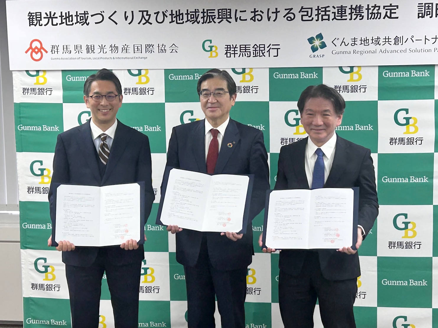 サステナブル=持続可能な観光地づくりを進めようと、群馬県観光物産国際協会と群馬銀行、投資専門子会社のぐんま地域共創パートナーズの3者は30日、包括連携協定を結びました。
