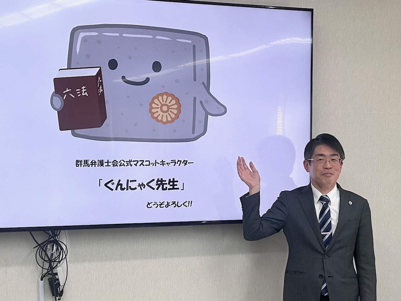 また、群馬弁護士会はこんにゃくをモチーフにした会の公式マスコットキャラクター「ぐんにゃく先生」を発表しました。弁護士の堅いイメージを払拭し、誰でも気軽に相談できる雰囲気を目指します。キャラクターは全国から公募で集まった133案から弁護士会員らが選定し、前橋市の女性が応募した案が選ばれました。