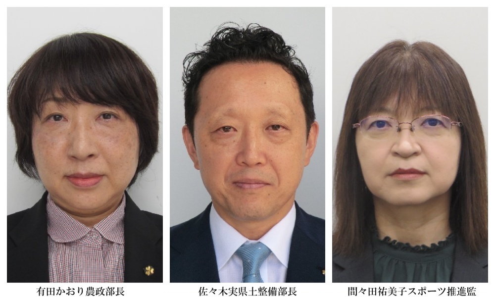 農政部長には有田かおりぐんまブランド推進課長59歳が、県土整備部長には佐々木実砂防課長58歳が、それぞれ就任します。