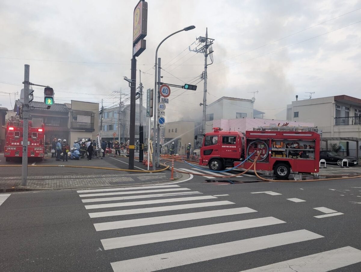 6日午後、高崎市の住宅街で火事があり、店舗1棟が全焼し隣接する住宅1棟が半焼しました。