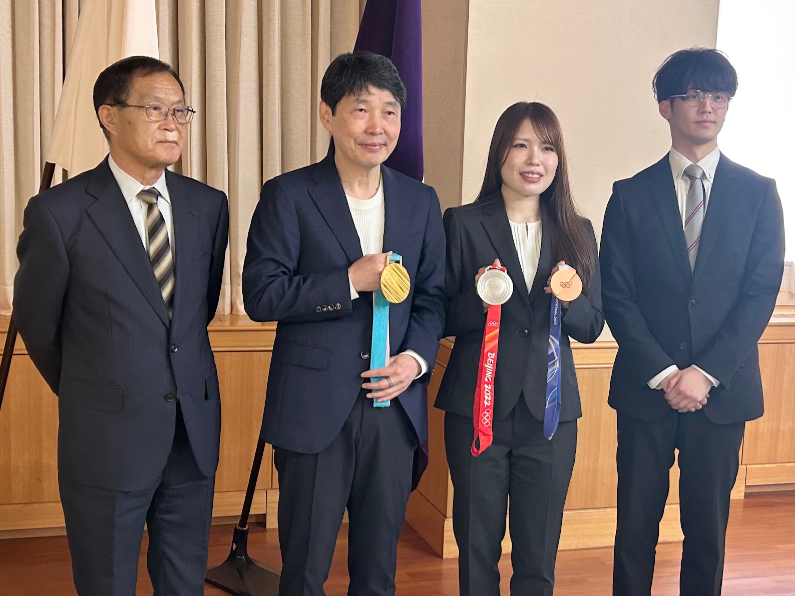 2018年平昌オリンピック金メダルなど、冬期オリンピック3大会連続でメダルを獲得した高崎健康福祉大学出身の女子スピードスケート 佐藤綾乃選手が7日に群馬県庁を訪れ、山本一太知事に競技引退を報告しました。