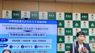 ニュース中東情勢緊迫化の影響に備え 群馬県の山本知事が有識者会議設置の考え 中東情勢の緊迫化によるエネルギー不足などの影響に備えるため、群馬県の山本一太知事は、有識者会議を設置して検討を進める考えを示しました。2日の定例記者会見で明らかにしたものです。 山本知事は中東情勢の悪化で石油由来製品の不足などによる生活基盤...2026.04.02ニュース