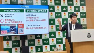 ニュース沼田のクマ被害などを受け 山本知事が注意呼びかけ 全国各地でクマによる被害が相次ぎ沼田市でも7日、クマがスーパーの店内に侵入し2人がケガをしたことをうけて、群馬県の山本一太知事は9日の定例記者会見でクマ被害への注意を呼びかけました。 山本知事は県として対策を進めるなか今回の事故は残念とした...2025.10.10ニュース
