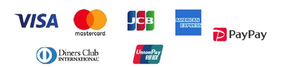 VISA、MasterCard、JCB、アメリカン・エキスプレス、ダイナースクラブ、銀聯、ペイペイがご利用になれます。 ※カードのお支払いは「一括払いのみ」になります。